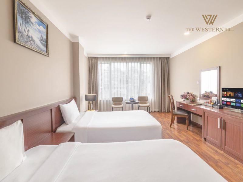 Bước chân vào The Western Hill, bạn sẽ ấn tượng với không gian được thiết kế ấm cúng và tinh tế. Các phòng nghỉ được decor theo phong cách châu Âu hiện đại, kết hợp cùng gam màu nhẹ nhàng, tạo cảm giác thư giãn và dễ chịu.