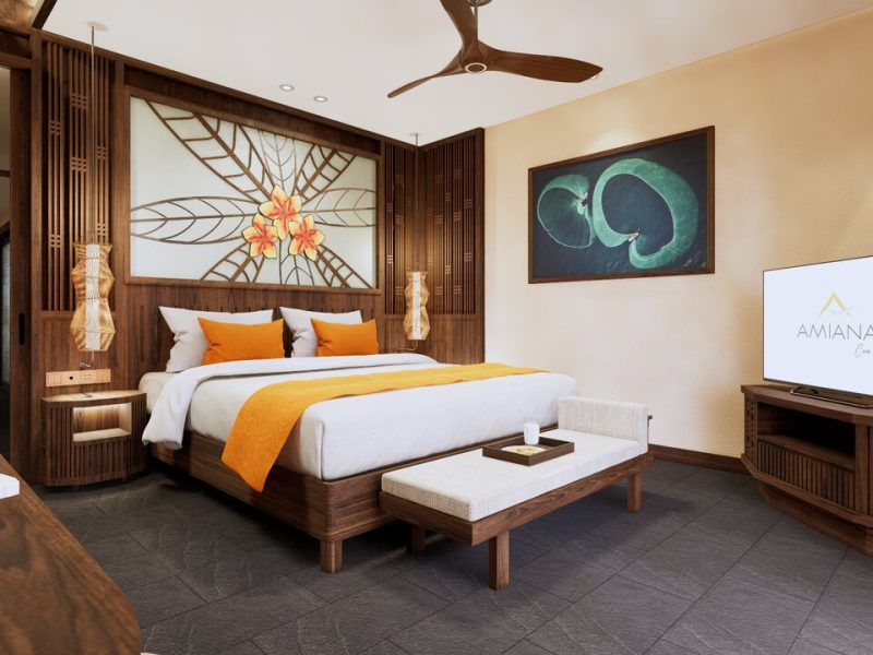 Amiana Resort Cam Ranh sở hữu hơn 150 phòng nghỉ và biệt thự hướng vườn – hướng biển – hồ bơi riêng, được thiết kế tinh tế theo phong cách nhiệt đới hiện đại. Mỗi căn phòng đều được trang bị đầy đủ tiện nghi 5 sao: minibar, bồn tắm đá tự nhiên, giường king-size, TV thông minh, máy pha cà phê và dịch vụ quản gia theo yêu cầu.