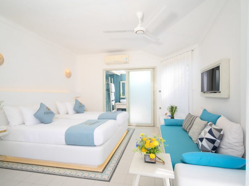 - Tùy vào công suất phòng, giường phụ có thể thay bằng nệm phụ.