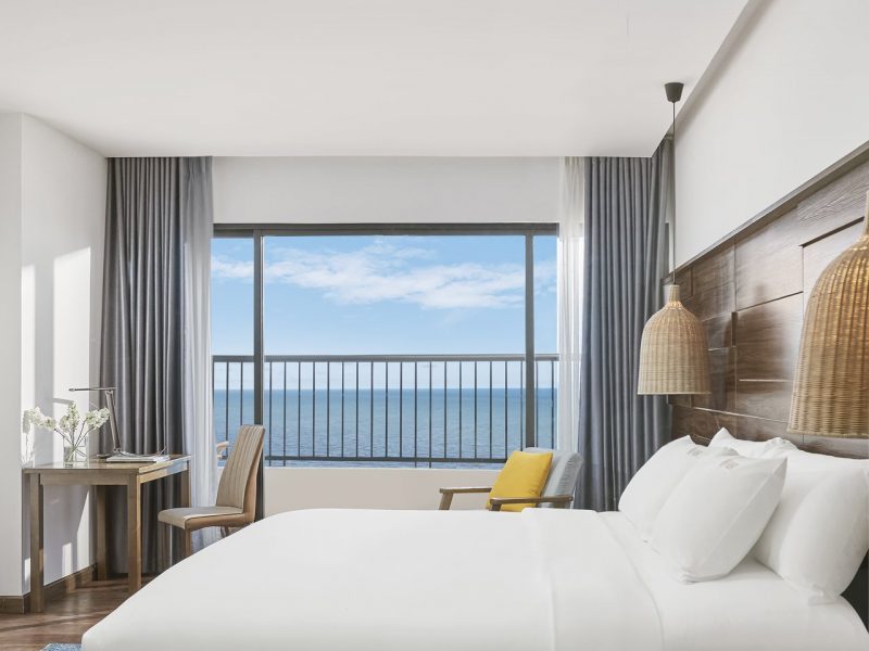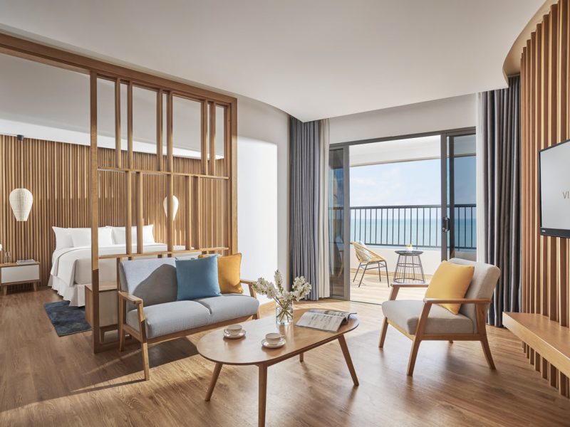 + Không gian hiện đại – tiện nghi: Từ phòng nghỉ đến nhà hàng và khu vực công cộng đều được chăm chút thiết kế. Tone màu nhẹ nhàng, nội thất gỗ cao cấp, phù hợp cho cả nghỉ dưỡng lẫn làm việc.